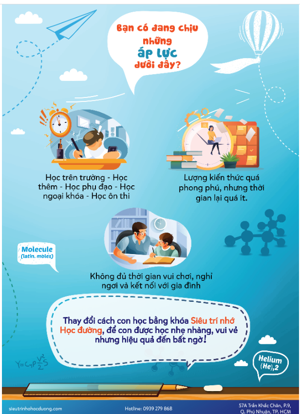 Học sinh mệt mỏi, căng thẳng, luôn cảm thấy học tập là một gánh nặng? Vì sao lại như vậy? Câu trả lời một phần là do trí nhớ của mỗi cá nhân đều có giới hạn, trong khi khối lượng kiến thức cần nạp vào quá nhiều. Vậy làm sao để con có thể học tập vui vẻ, nhẹ nhàng mỗi ngày? Hãy đăng ký ngay chương trình Siêu trí nhớ học đường. Bạn thử tưởng tượng: Con bạn đeo chiếc balo nặng trĩu trên vai, chúng ta xót con và tìm ngay giải pháp là lắp bánh xe cho chiếc balo đó để đôi vai con được giải phóng. Siêu trí nhớ học đường giống như chiếc bánh xe đó, giúp con của bạn học nhanh, nhớ lâu, dễ dàng nạp kiến thức, đồng thời có nhiều thời gian để nghỉ ngơi, vui chơi.