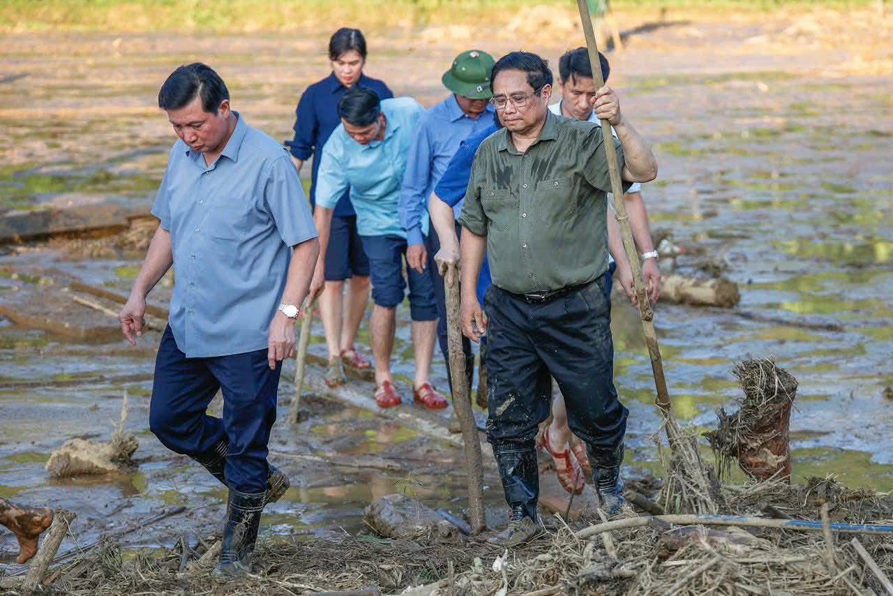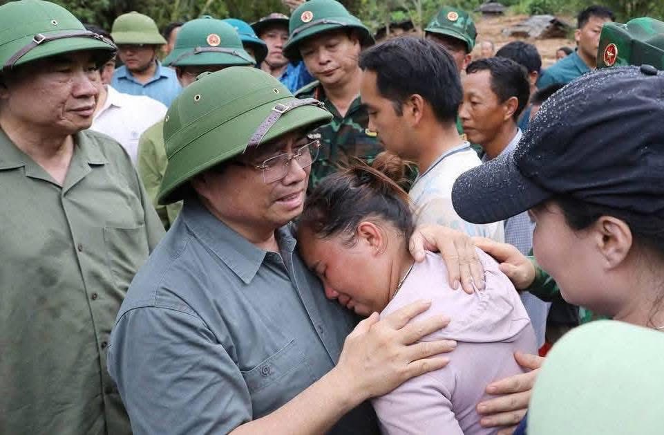 Giữa khung cảnh hoang tàn sau thiên tai, Thủ tướng trực tiếp thăm hỏi các gia đình nạn nhân, chỉ đạo công tác cứu hộ, cứu nạn với tinh thần khẩn trương nhất và “Không để người dân nào bị bỏ lại phía sau”.
