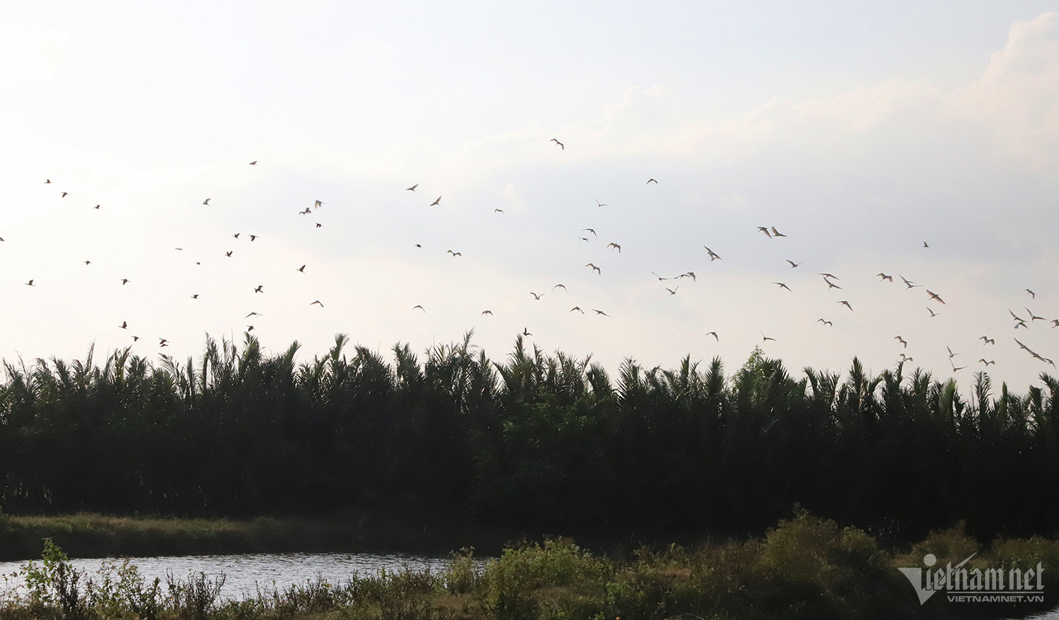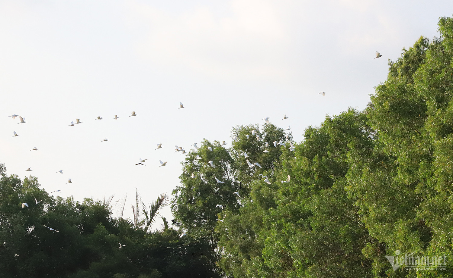 Hoàng hôn dần buông xuống, từng đàn chim bay về tìm chỗ trú ngụ sau một ngày miệt mài kiếm ăn. Không lâu sau, khu vườn nhà ông Lâm Văn Huy (72 tuổi, ngụ xã Giai Hoà 1, huyện Mỹ Xuyên, Sóc Trăng) phủ một màu trắng xoá. Những âm thanh phát ra từ đàn chim râm ran cả khu vực. Chúng kêu liên hồi như báo hiệu gọi nhau về tổ.