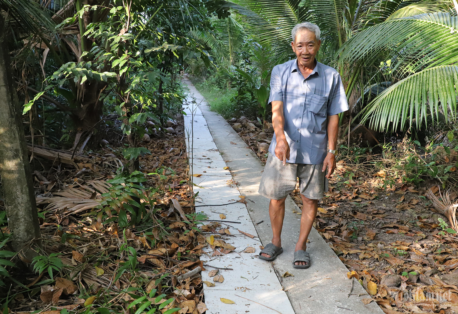 Được sự giúp đỡ của con cháu, ông Huy chi gần 100 triệu đồng làm con đường bê-tông đi quanh khu vườn. Gần đây, một số vị trí mặt đường được ông gia cố, mở rộng, tiện công thu hoạch dừa và chăm sóc đàn chim trời.