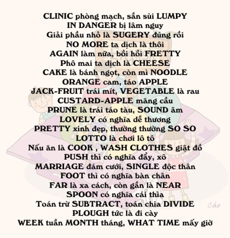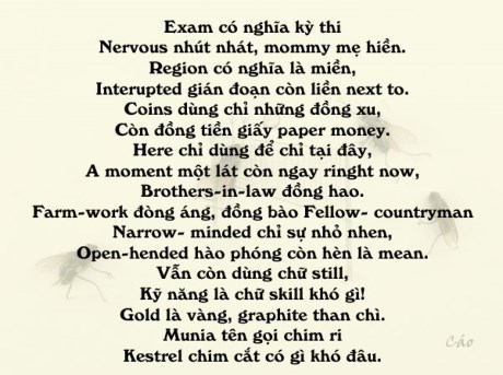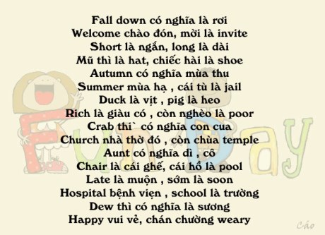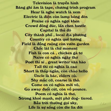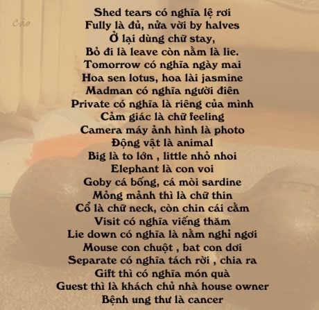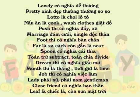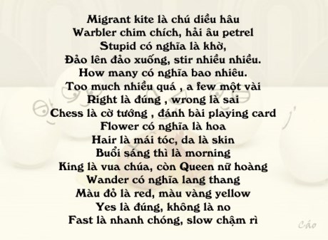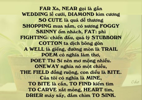 Cách đây nhiều năm GS Châu đã chia sẻ cách học nhiều từ vựng tiếng Anh bằng thơ lục bát dễ thuộc dễ nhớ. Nào chúng ta cùng thử nhé.