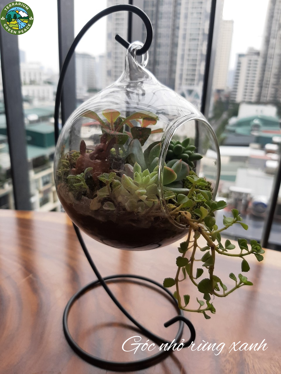 - Vì đây là sản phẩm được tạo nên từ mỗi loại cây khác nhau, mà trong tự nhiên không cây nào giống y chang nhau. Do đó các bình terrarium cùng concept sẽ không thể giống nhau y đúc, độ chênh lệch có thể lên tới 25%, nhưng về bố cục tổng thể của bức tranh thiên nhiên thu nhỏ này vẫn được đảm bảo khi nhìn vào bạn vẫn cảm nhận được đó như là một góc rừng xanh thu nhỏ bạn nhé🙂