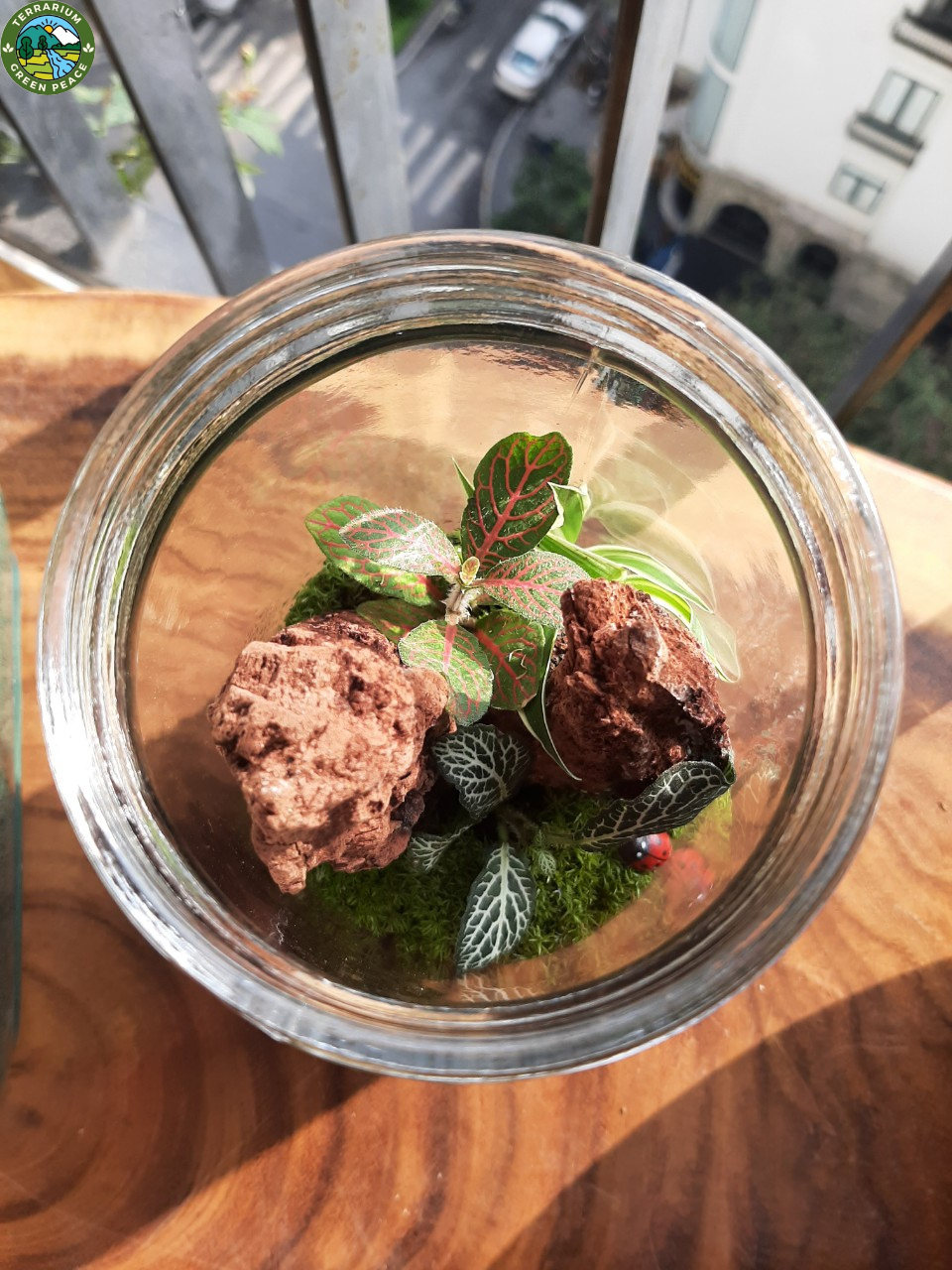 - Thành phần: sỏi suối to, sỏi suối nhỏ, rêu khô, than hoạt tính, đất trồng, rêu cỏ, gỗ lũa nâu (làm núi), cẩm nhung xanh, cẩm nhung đỏ, lan chi, phụ kiện (bọ rùa)