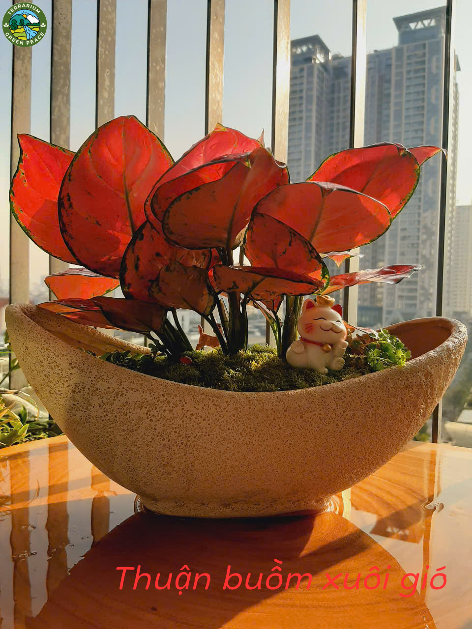 🍀Vậy bạn hãy để Tiểu cảnh "Thuận buồm xuôi gió" trợ duyên cho bạn nhé. Hy vọng sắc đỏ rực rỡ của 3 cây Vạn lộc như những cánh buồm đỏ thắm mang sẽ đến phúc lộc thọ hoặc vạn điều may mắn, tốt lành đến cho bạn trong năm mới nhé🌾