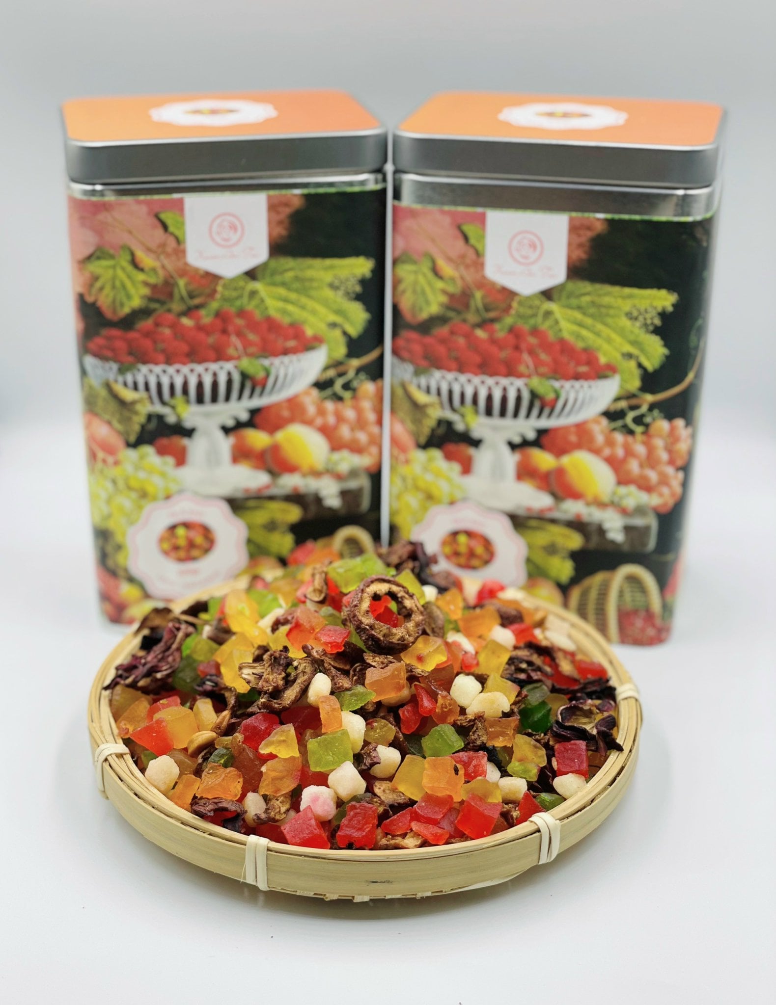 Thành phần: Hoa hibicus khô (10%), quả sơn tra (10%), trái cây nhiệt đới (chuối, đào, kiwi, táo, dứa, dâu, xoài, chanh…) sấy khô (80%).