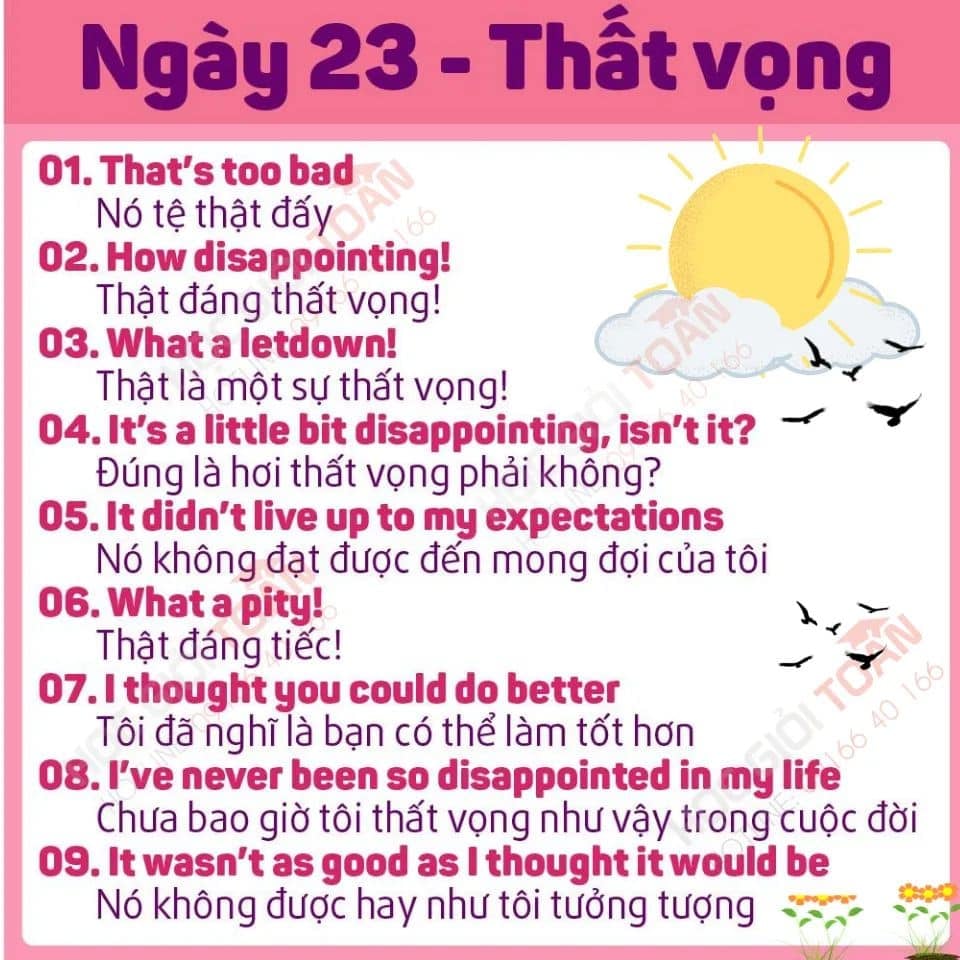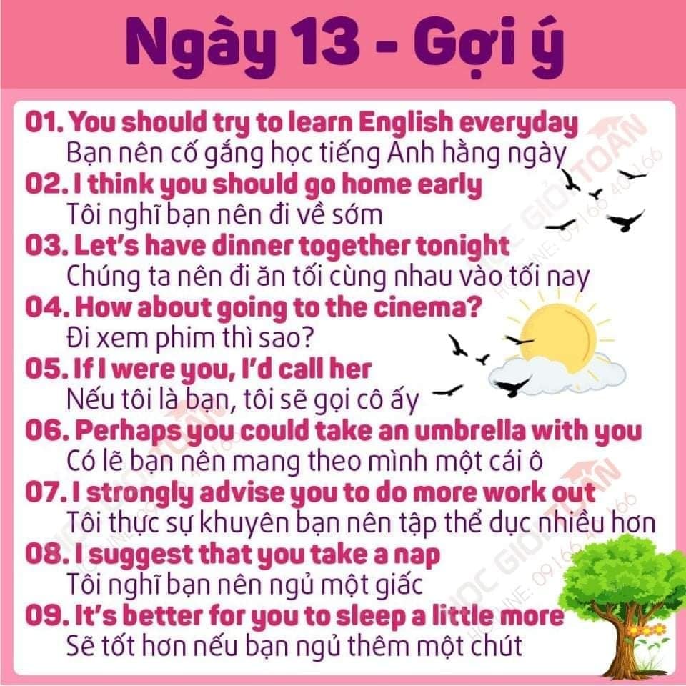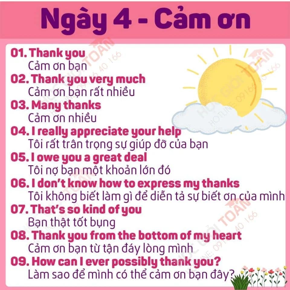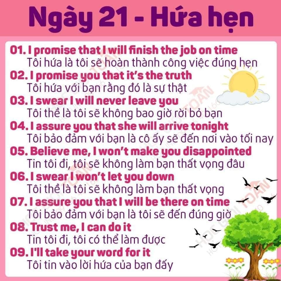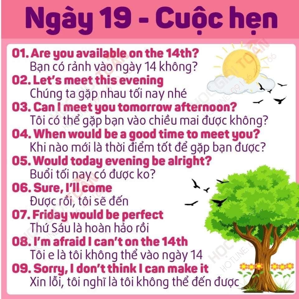 Tiếng Anh là công cụ giao tiếp chung trên toàn thế giới. Nên học tiếng Anh tốt sẽ là hành trang cho con trẻ tự tin trở thành công dân toàn cầu. Trong quá trình đó không thể thiếu sự đồng hành của bố mẹ. Sau đây là các mẫu câu trong 30 ngày giao tiếp tiếng Anh cùng con, đó không phải là tất cả nhưng là những mẫu câu rất cơ bản và thường dùng trong cuộc sống. Bố mẹ nên tham khảo và chịu khó 'chat' với con hàng ngày để giúp con trau dồi, phát triển "vốn" sinh ngữ quốc tế phổ thông nhất này nhé.