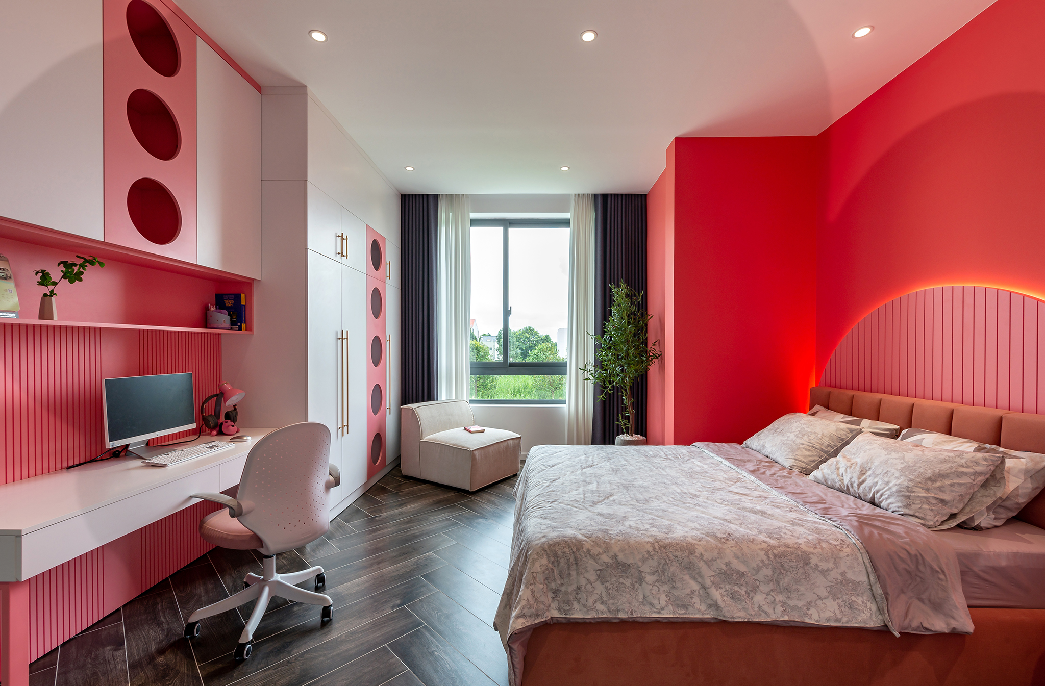 Phòng ngủ của 2 con được thiết kế theo tone màu yêu thích và nhu cầu học tập, vui chơi riêng.